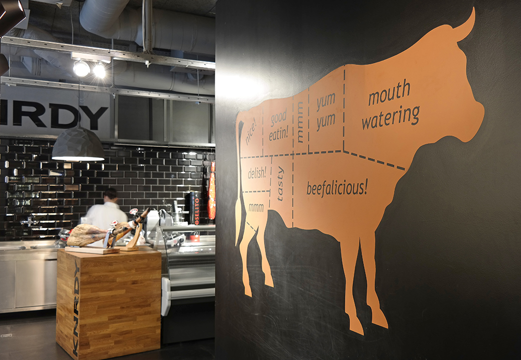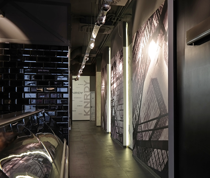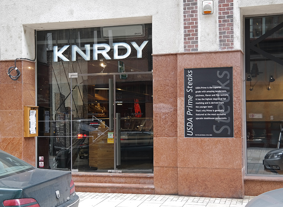 Budapesten a Nádor utcában található KNRDY Steakhouse belső dizájnjának kialakításakor a Sütő Interior Architects belsőépítészeti iroda tervei alapján egy Manhattan feelinget valósíthattunk meg főleg falképekben az alkotópáros – Sütő László és Sütő Kata – belsőépítészeti tervei alapján, mely számos interior magazinban vezető hírként jelent meg, és óriási sikert aratott. Stúdiónkat hatalmas örömmel töltötte el, hogy egy ilyen nagyszabású terv megvalósításában részt vehettünk, és együtt inspirálódhattunk a tervezőkkel. Az étterem számára ételfeliratokat és közel 100 négyzetméter falnyomatot készítettünk. Külön örömünkre szolgált, hogy a KNRDY Steakhouse tulajdonosa, Konrády Zoltán ebbe a munkába bevont minket.