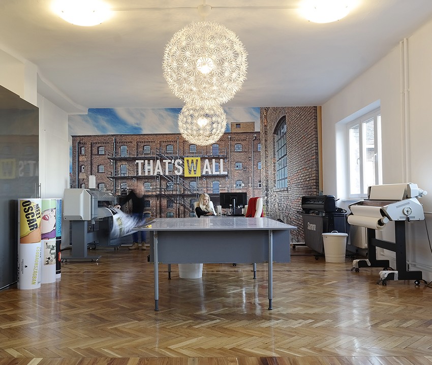 Dizájnstúdiónkat a Malom udvarban rendeztük be, amelyet számos kreatív cég választott már bázisául. Az épületegyüttes megőrizte a múlt hangulatát és egy klasszikus magyar malomüzem épületstruktúráját. A nyomtatási terület kialakításakor ez a különleges miliő inspirált bennünket arra, hogy a gyár hangulatát beemeljük az enteriőrbe. A belső dizájnt folyamatos finomhangolással alakítjuk ki, hogy cégüzeneteink tevékenységeink szerves részévé váljanak, és a munkahelyünkön jól érezzük magunkat. A kényelem, az inspiráció és az arculat hármas egységében éljük mindennapjainkat.